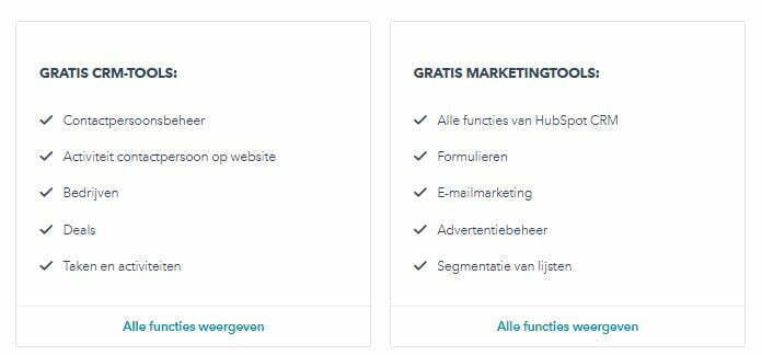 Er zijn functionaliteiten die de gratis versie niet aanbiedt, dat is natuurlijk te verwachten. De ins en outs van wat HubSpot méér biedt kan je vinden op hun site. Benieuwd naar het aanbod? Hier vind je het overzicht