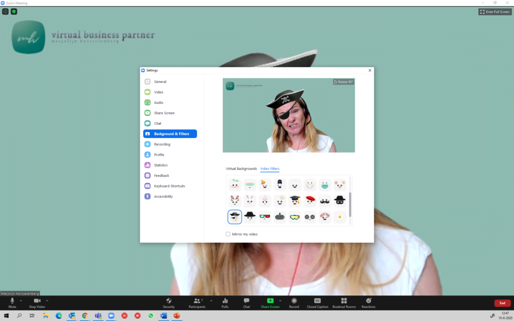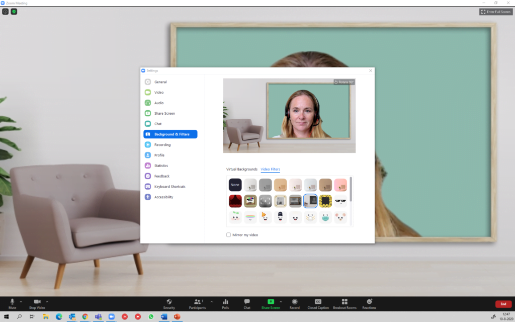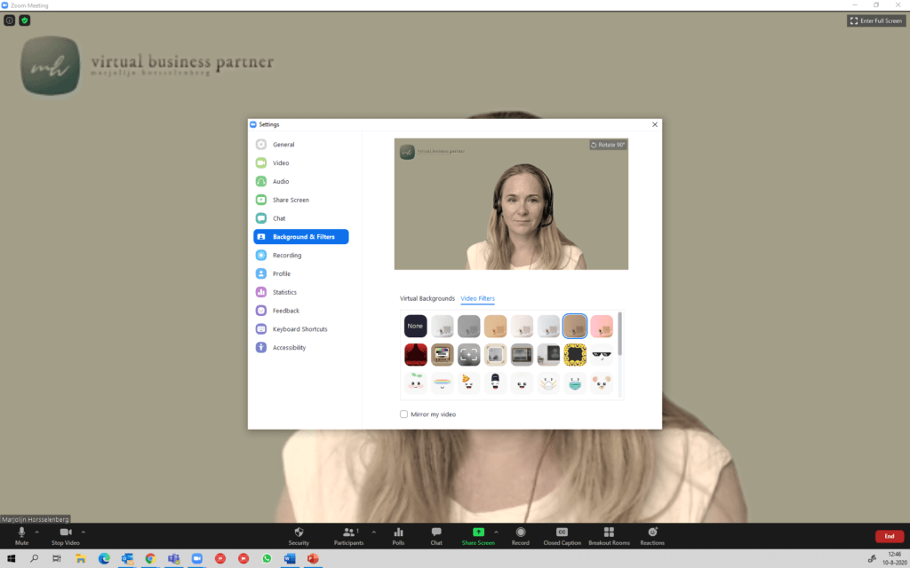 - je powerpoint presentatie kan je nu als virtual background instellen.