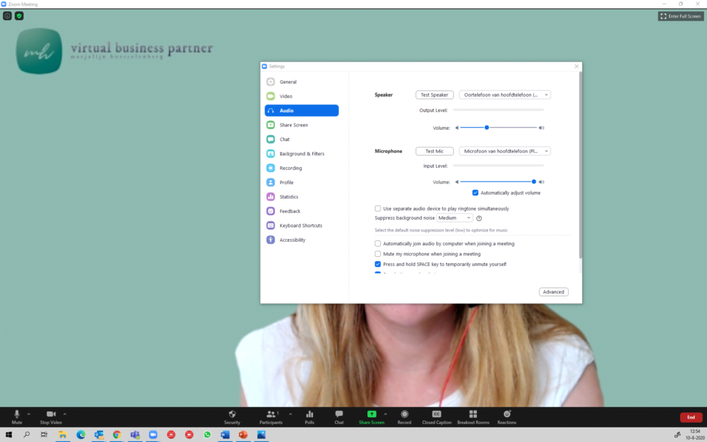 Soms heb je storende achtergrondgeluiden. Denk aan spelende kinderen of verkeerslawaai. Deze kunnen afleiden tijdens je meeting. Met deze functie kan je deze achtergrondgeluiden dempen.