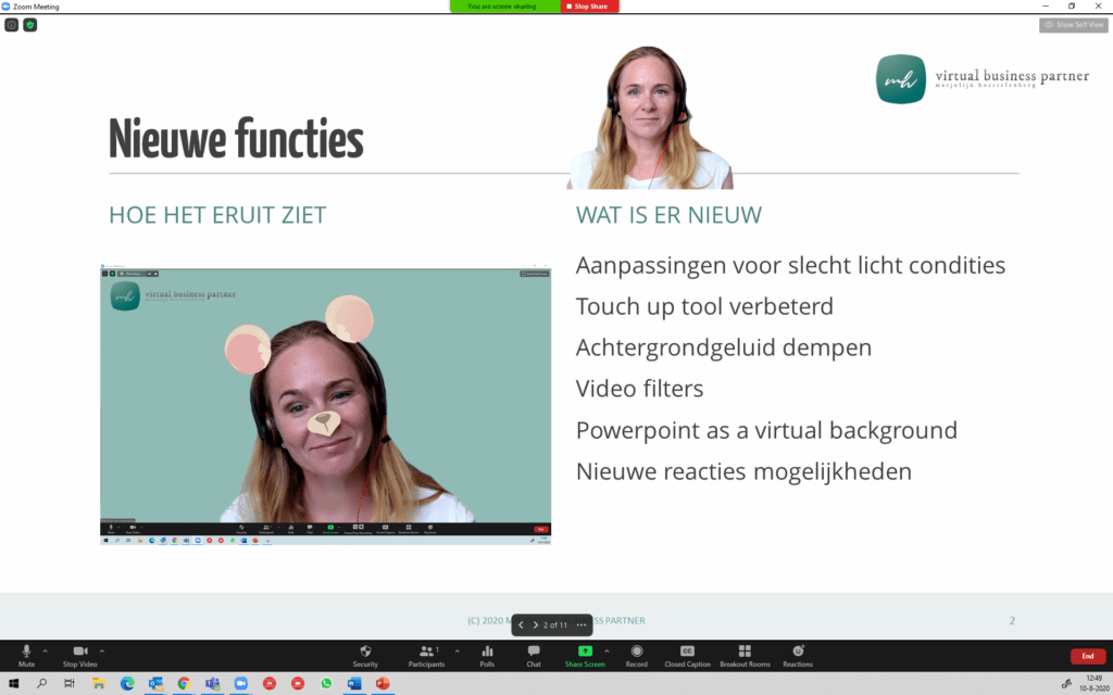 Vooral de optie om je powerpoint als virtuele achtergrond te gebruiken is een mooie toevoeging die een hoop mogelijkheden biedt.